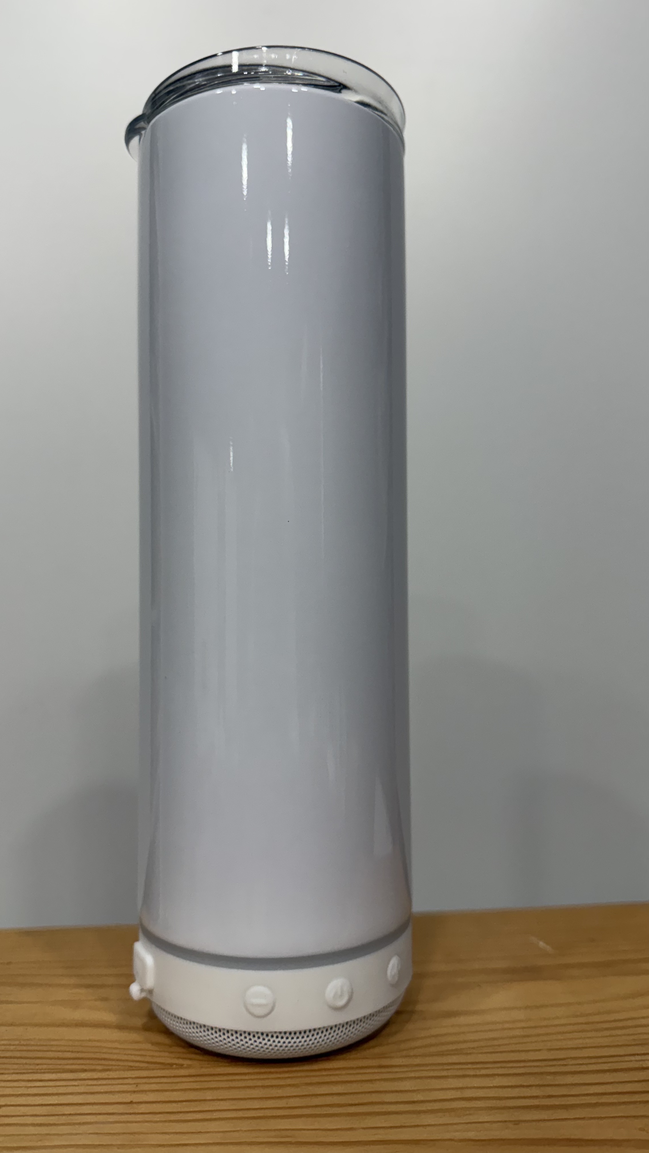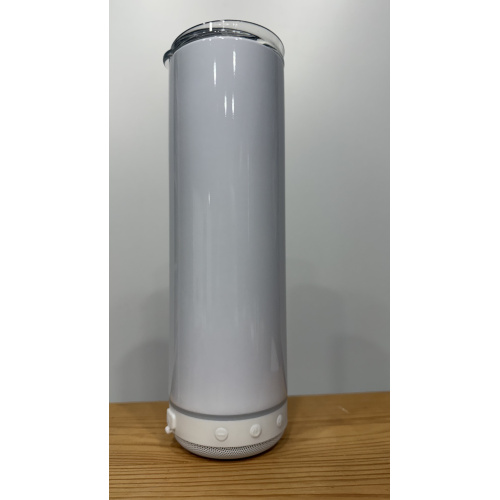 20 oz tumbler with a built in speaker on the bottom. The speaker requires a bluetooth connection